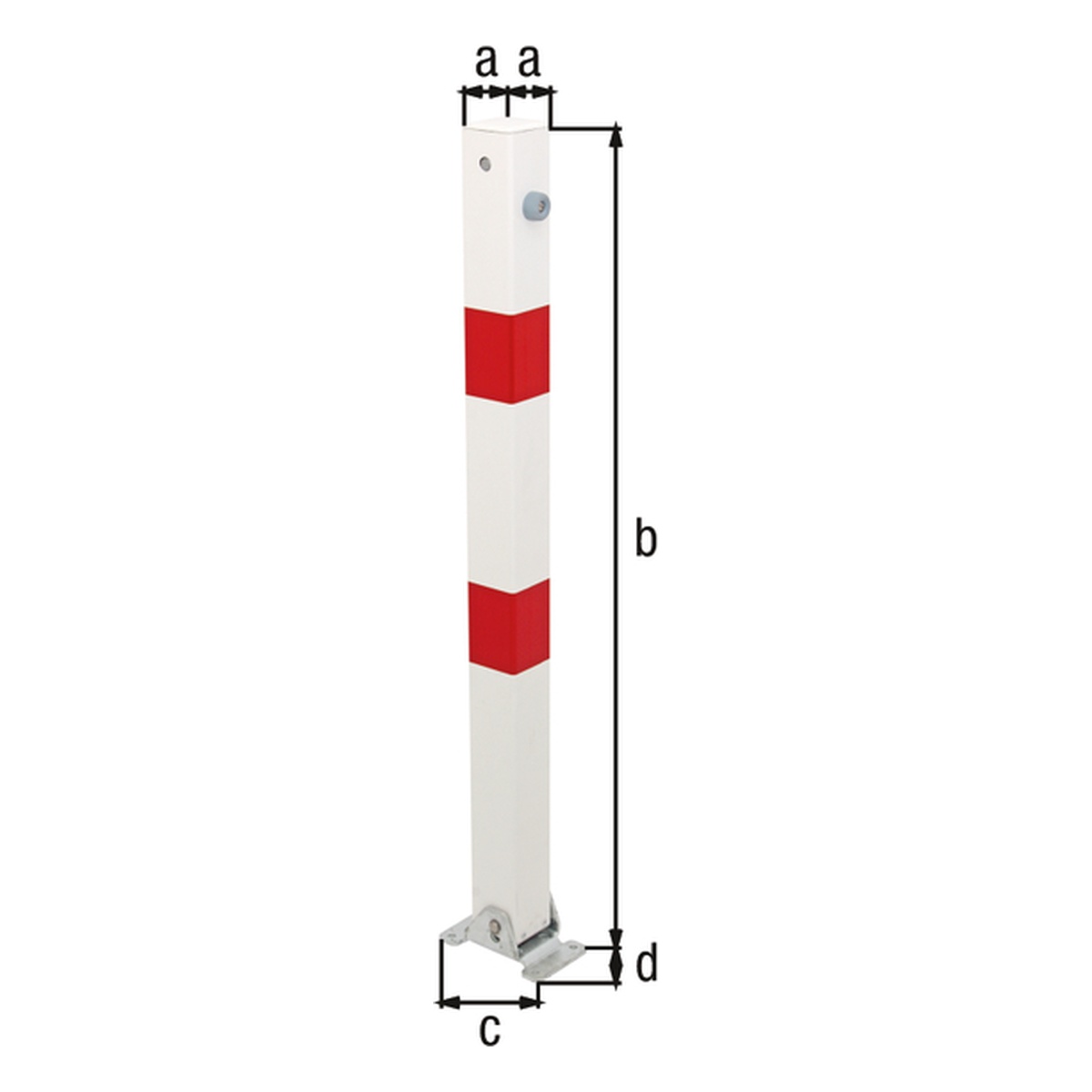 Produktinformationen "Alberts Absperrpfosten Klappy, eckig, umlegbar, 160 x 100 x 1000 mm, Stahl roh, feuerverzinkt, weiß kunststoffbeschichtet mit zwei roten, reflektierenden Ringen, zum Aufschrauben, Dreikantschloss ohne Dreikantschlüssel - 1 Stk."
