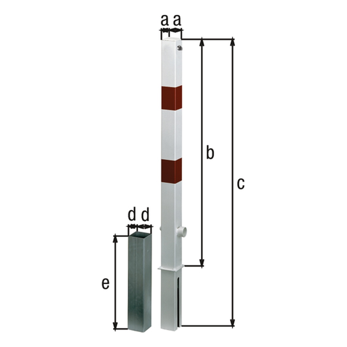 Produktinformationen "Alberts Absperrpfosten Passau-Royal, eckig, herausnehmbar, 105 x 100 x 1450 mm, Stahl roh, feuerverzinkt, weiß kunststoffbeschichtet mit zwei roten, reflektierenden Ringen - 1 Stk."