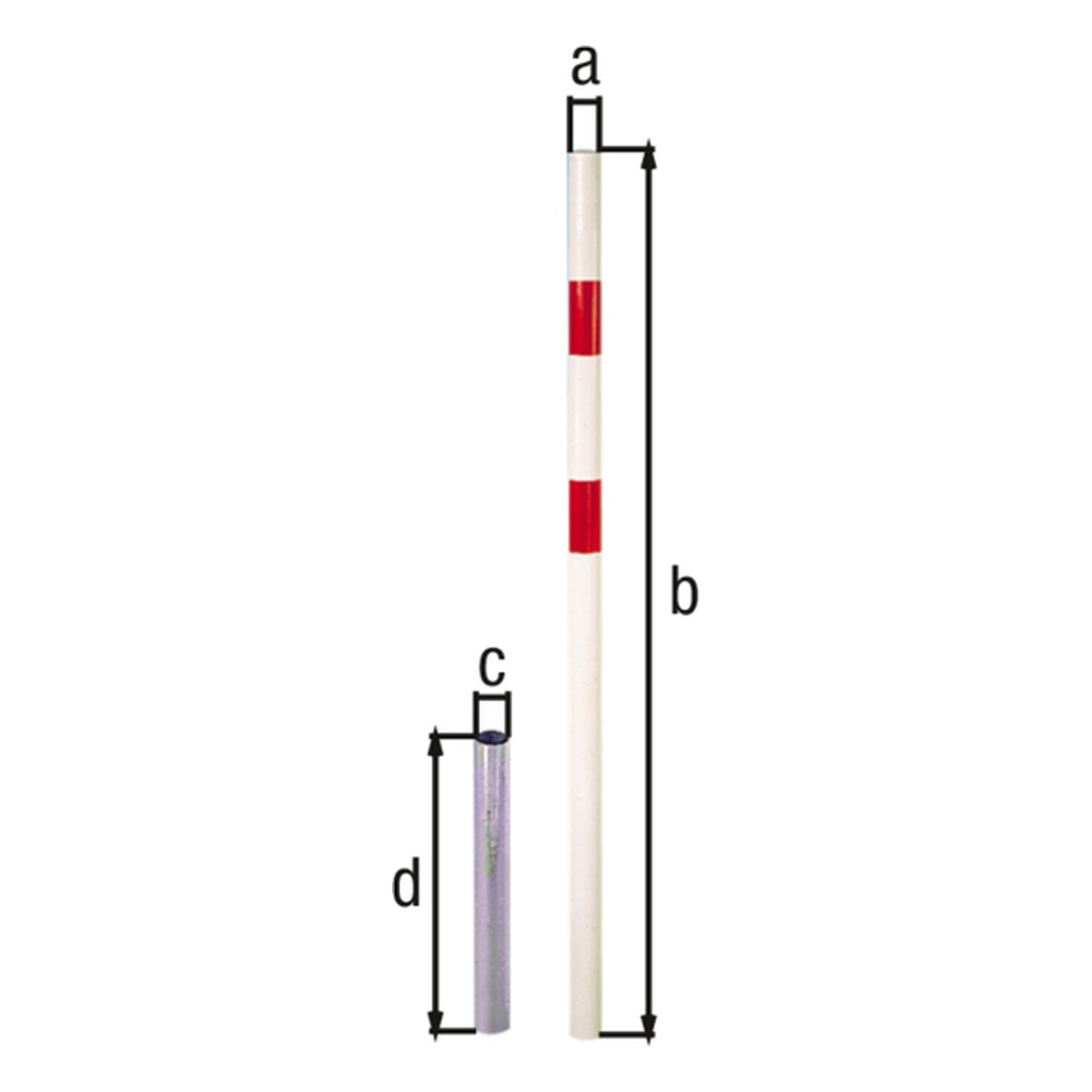 Produktinformationen "Alberts Absperrpfosten Stabo, herausnehmbar, 60 x 60 x 1200 mm, Stahl roh, feuerverzinkt, weiß kunststoffbeschichtet mit zwei roten, reflektierenden Ringen - 1 Stk."