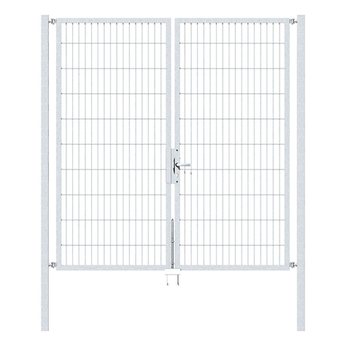- Die Lieferung erfolgt inkl. Rohrrahmenschloss PZ-Lochung, DIN links und rechts verwendbar, Aufhängung M16, Türdrücker aus Aluminium, Profilzylinder, Anschlag, Bodenschieber, Auflaufstütze, Pfosten und Befestigungslaschen für Doppelstab-Gittermatten.