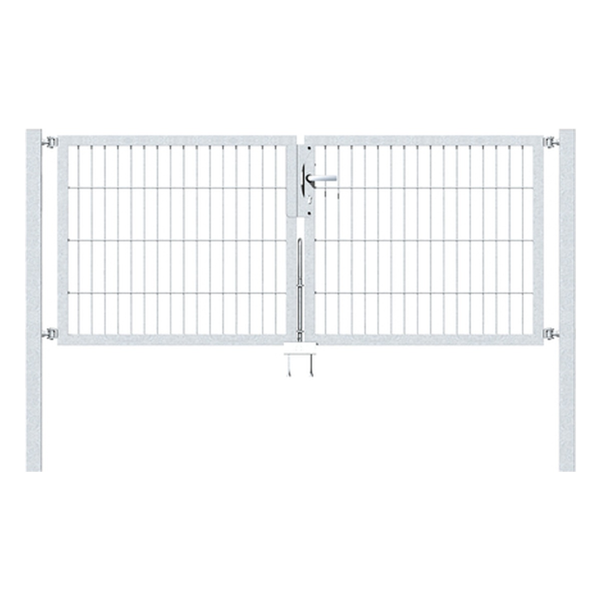 - Die Lieferung erfolgt inkl. Rohrrahmenschloss PZ-Lochung, DIN links und rechts verwendbar, Aufhängung M16, Türdrücker aus Aluminium, Profilzylinder, Anschlag, Bodenschieber, Auflaufstütze, Pfosten und Befestigungslaschen für Doppelstab-Gittermatten.