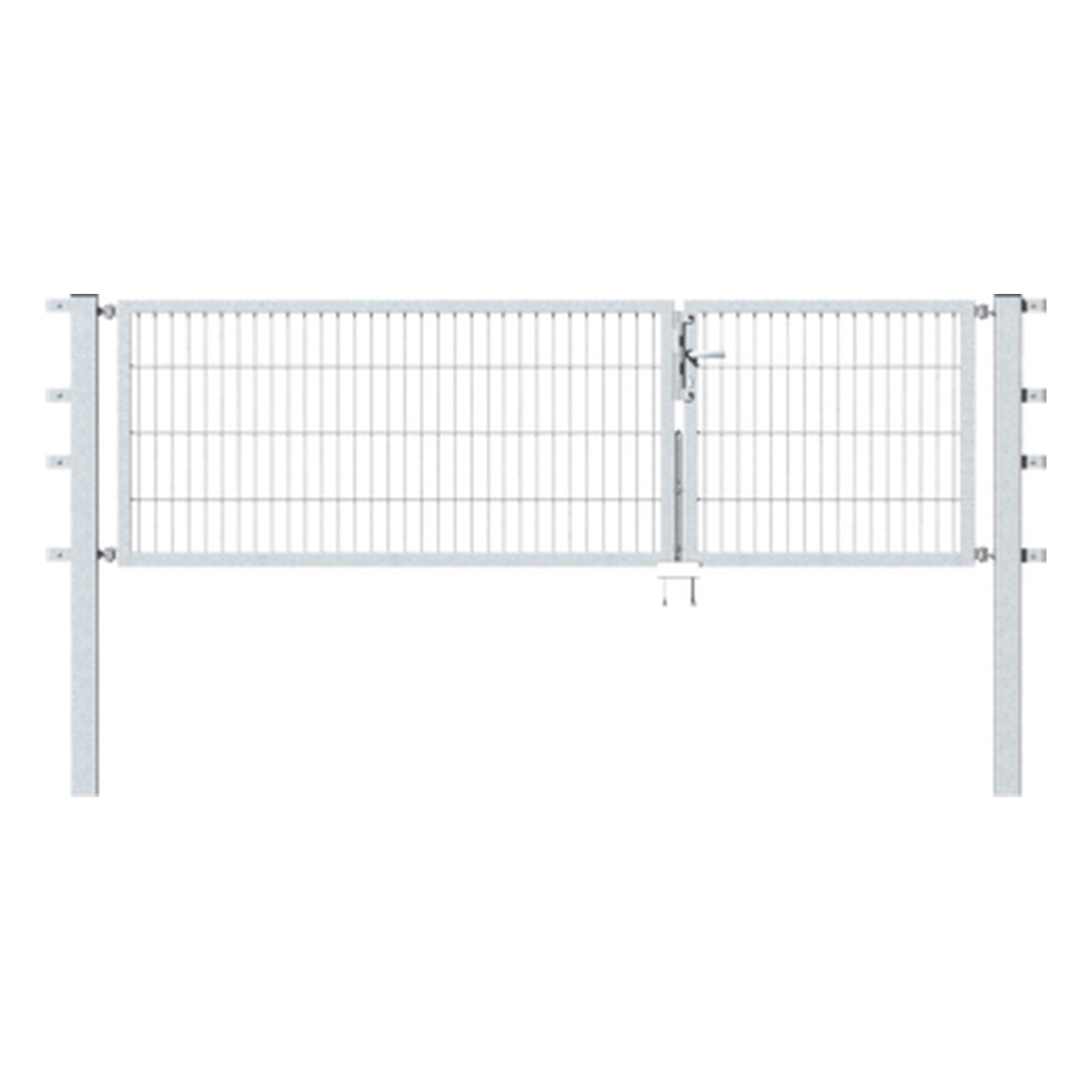 - Die Lieferung erfolgt inkl. Rohrrahmenschloss PZ-Lochung, DIN links und rechts verwendbar, Aufhängung M16, Türdrücker aus Aluminium, Profilzylinder, Anschlag, Bodenschieber, Auflaufstütze, Pfosten und Befestigungslaschen für Doppelstab-Gittermatten.