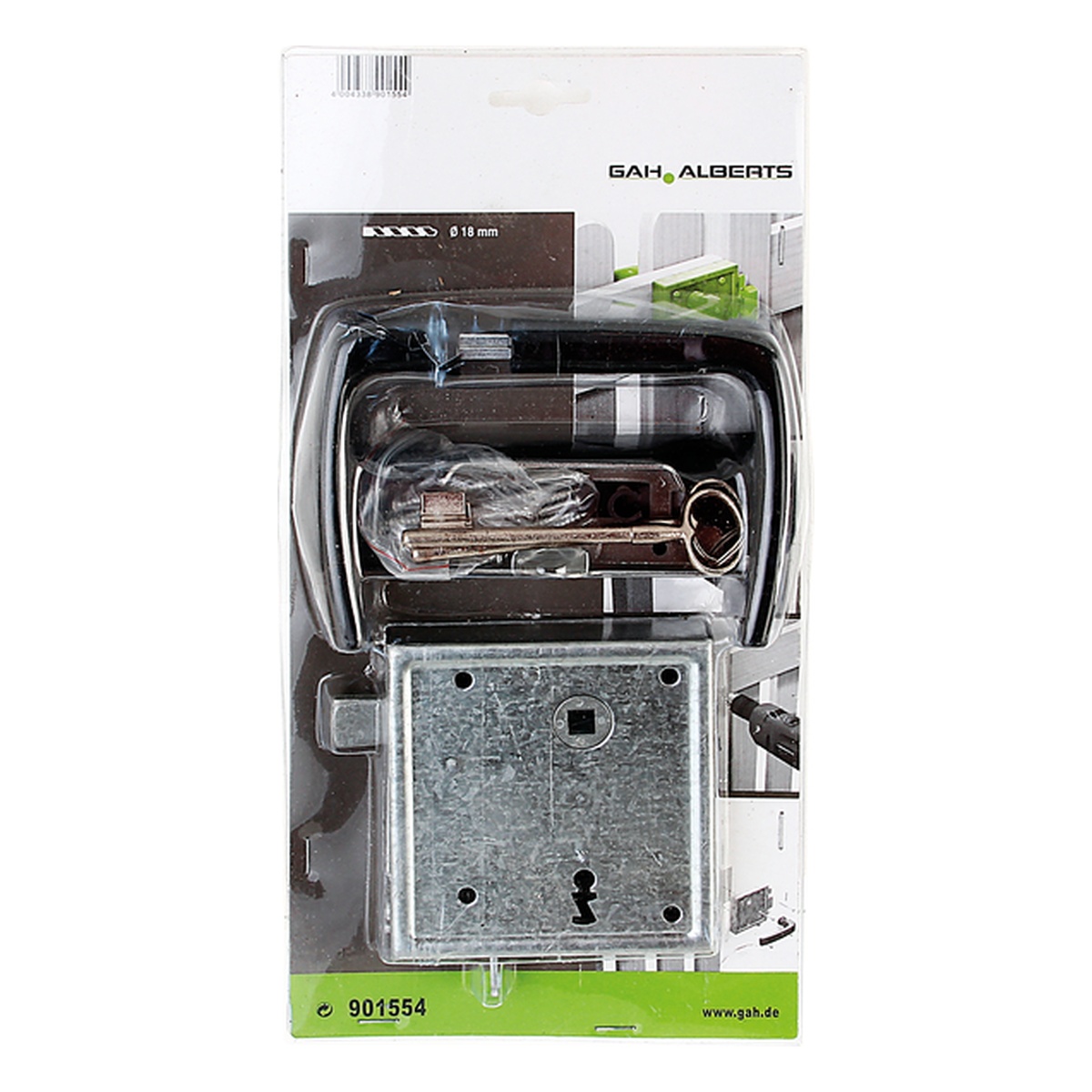 - Die Lieferung erfolgt inkl. Anschlag, Drücker, schmalem Schließkasten, Langschild und einem Schlüssel.