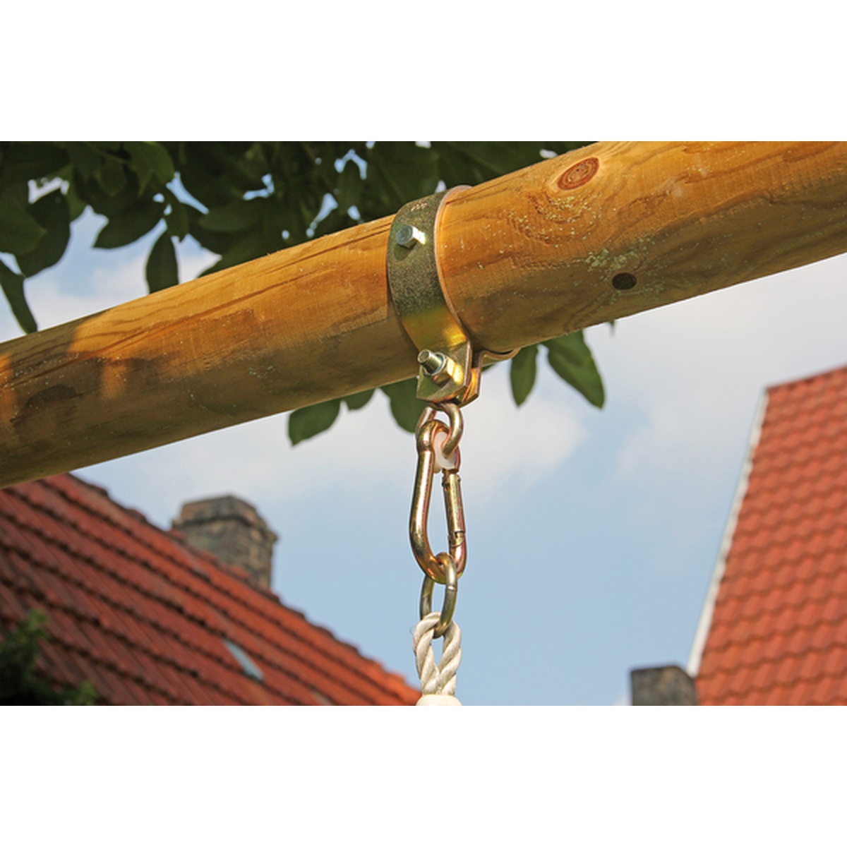 Die Schaukelschelle für Rundholz ist ein praktisches Befestigungselement, das speziell für die Montage von Schaukeln an Rundholzrahmen entwickelt wurde. Sie sorgt für einen festen Halt der Schaukel und trägt zur Langlebigkeit der gesamten Konstruktion bei. Durch ihre einfache Montage eignet sie sich ideal für den Einsatz im Garten oder auf Spielplätzen. Wichtig: Herstellerangaben zur Montage sowie maximale Belastung beachten!