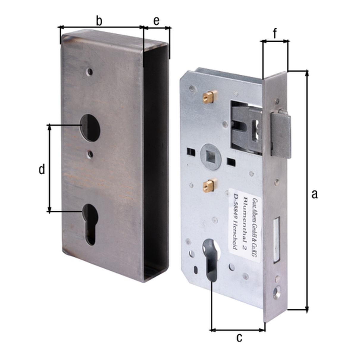 Produktinformationen "Alberts Schlosskasten mit verzinktem Schloss, 185 x 90 x 55 mm, Dornmaß 55 mm, Tiefe 34 mm - 1 Stk."