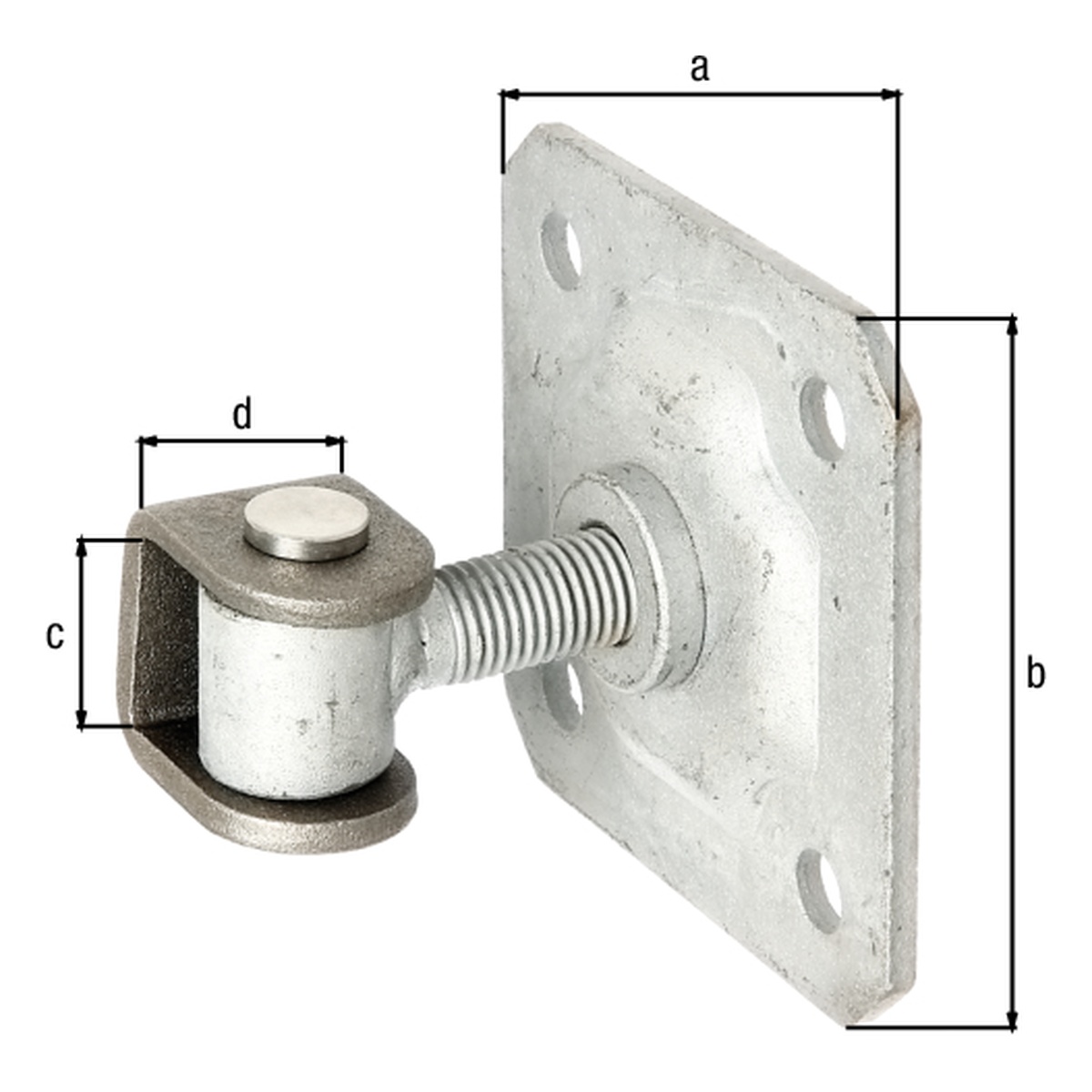 Produktinformationen "Alberts Torband mit U-Bügel zum Anschweißen und Platte zum Aufschrauben, 100 x 100 x 37 mm, U-Bügel: Stahl roh, Verbindungsbolzen und Sicherungsring: Edelstahl und Augenschraube: feuerverzinkt - 1 Stk."
