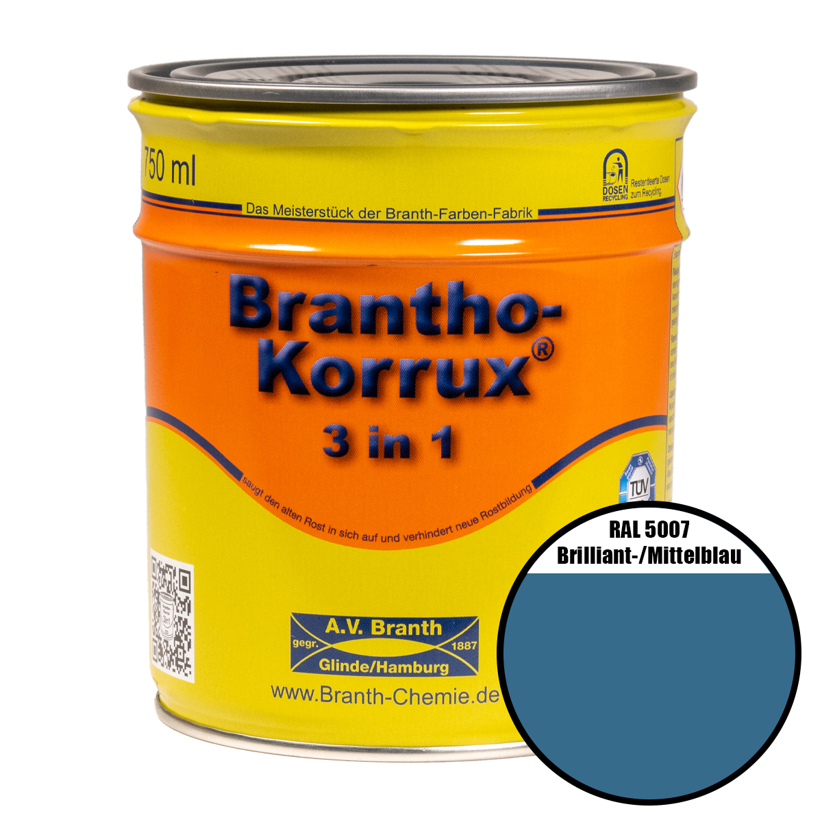 Produktinformationen "Brantho- Korrux "3 in 1" Metallschutzfarbe RAL 5007 brilliant-/mittelblau 0,75 l"