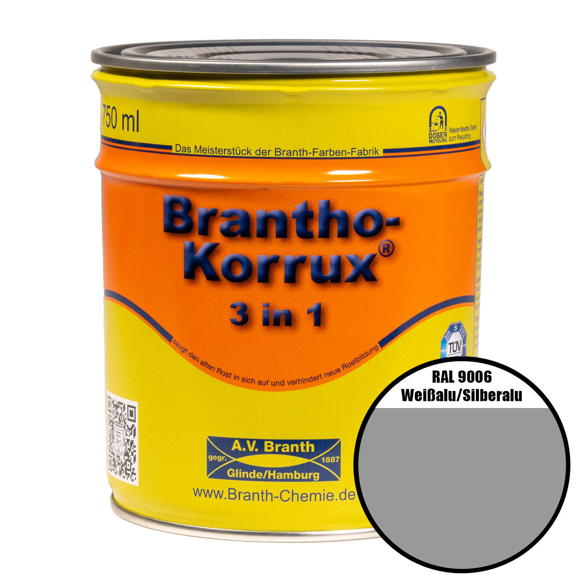Produktinformationen "Brantho- Korrux "3 in 1" Metallschutzfarbe RAL 9006 weißalu/silberalu 0,75 l"