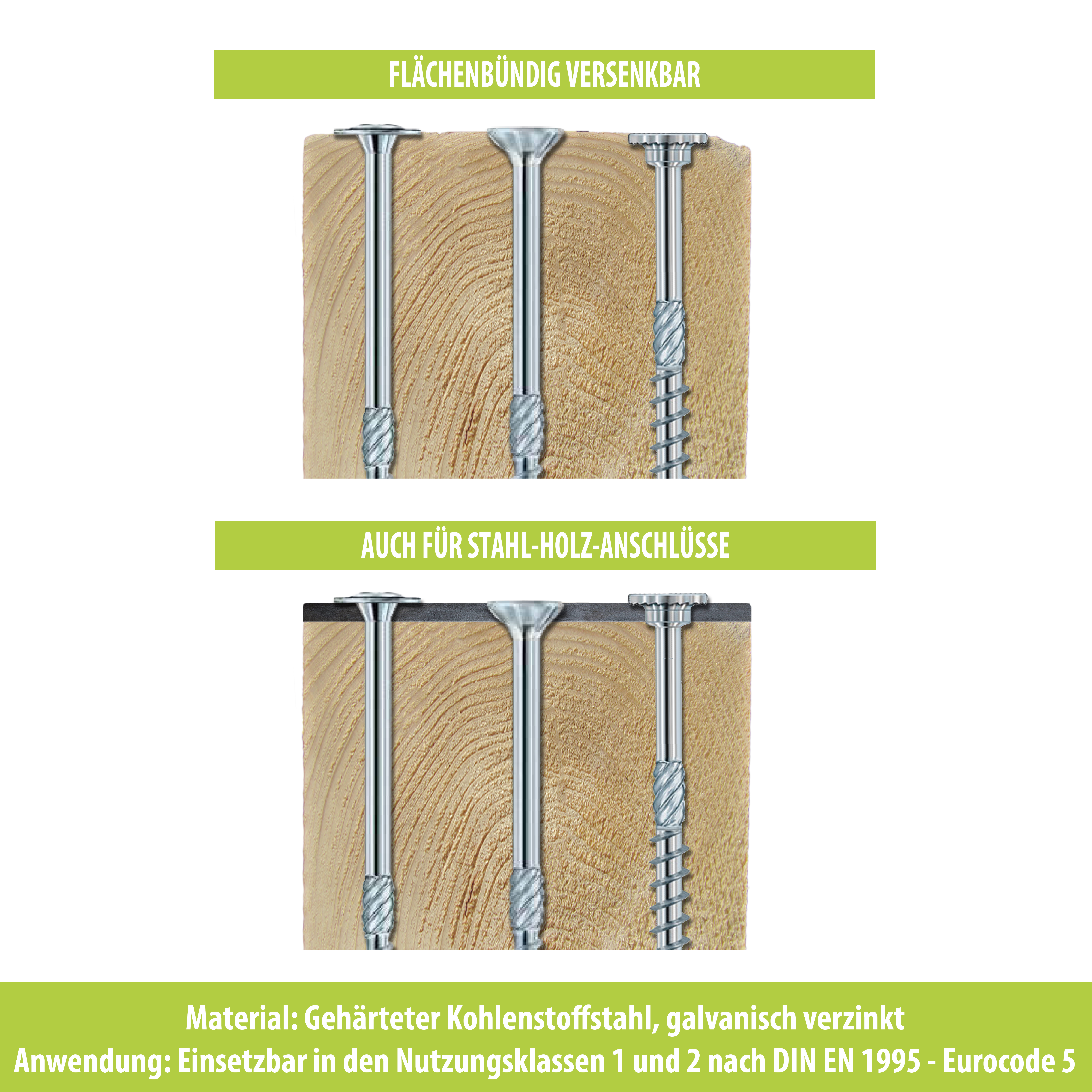 - Einsetzbar in den Nutzungsklassen 1 und 2 nach DIN EN 1995 - Eurocode 5