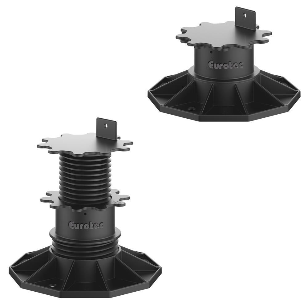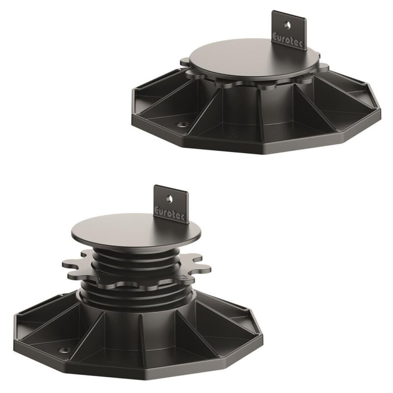 Die Eurotec Verstellfüße sind perfekt für Terrassen-Unterkonstruktionen aus Holz oder Aluminium geeignet. Zur einfachen und schnellen Montage verfügen die Füße über einen Winkel, um die Traghölzer oder Aluminiumprofile mit 1 bis 3 Schrauben zu befestigen Dabei darf der Abstand der Traghölzer der Unterkonstruktion höchsten 600 mm betragen. Die glasfaserverstärkten Eurotec Verstellfüße sind derart robust, dass sie selbst unter Vollbelastung nur etwa 2 mm Verformung des Materials zulassen.