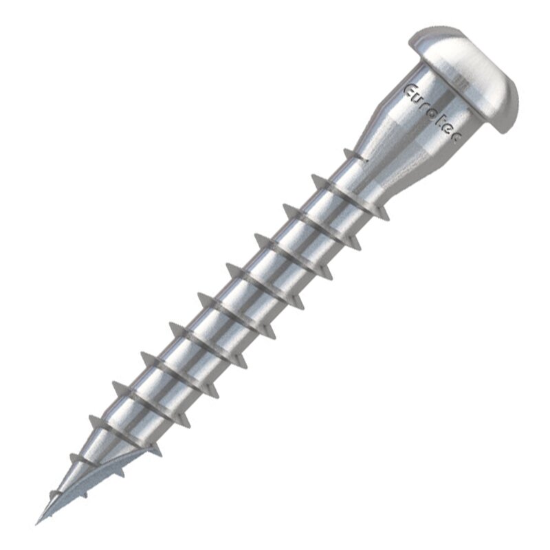 Die Eurotec Winkelbeschlagschraube (WBS) ist aus gehärtetem Kohlenstoffstahl gefertigt und wurde speziell für die Verbindungen zwischen Stahlblech und Holz konzipiert.