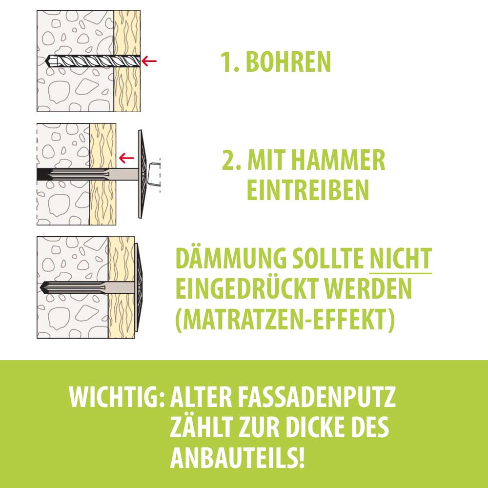 Zur Fixierung von weichen und druckfesten Dämmstoffen in der hinterlüfteten Fassade wie: