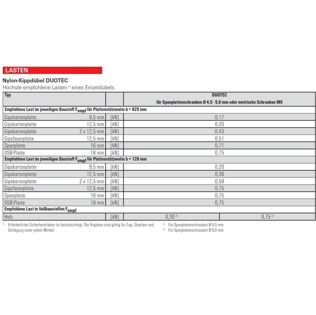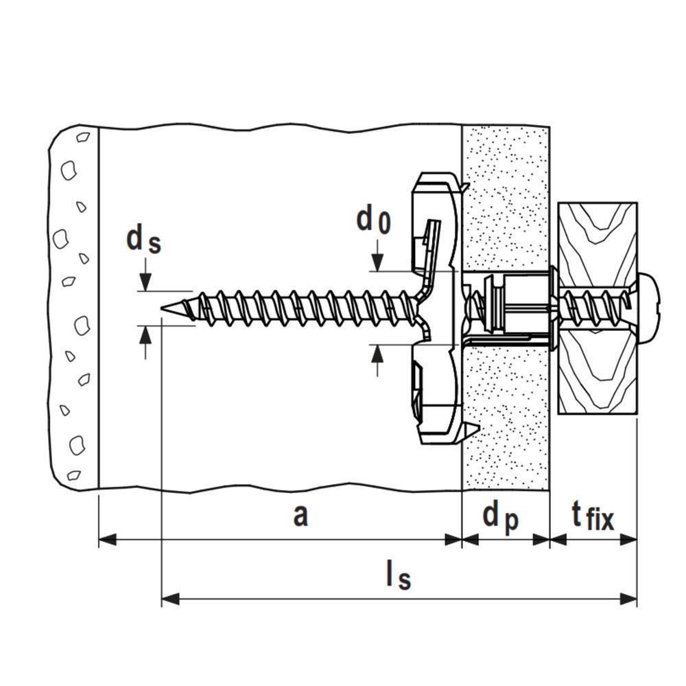 -Durch das kurze Kipplement geeignet für enge, auch mit Mineralwolle gedämmte Hohlräume. Länge des Kippelements ist zu beachten!