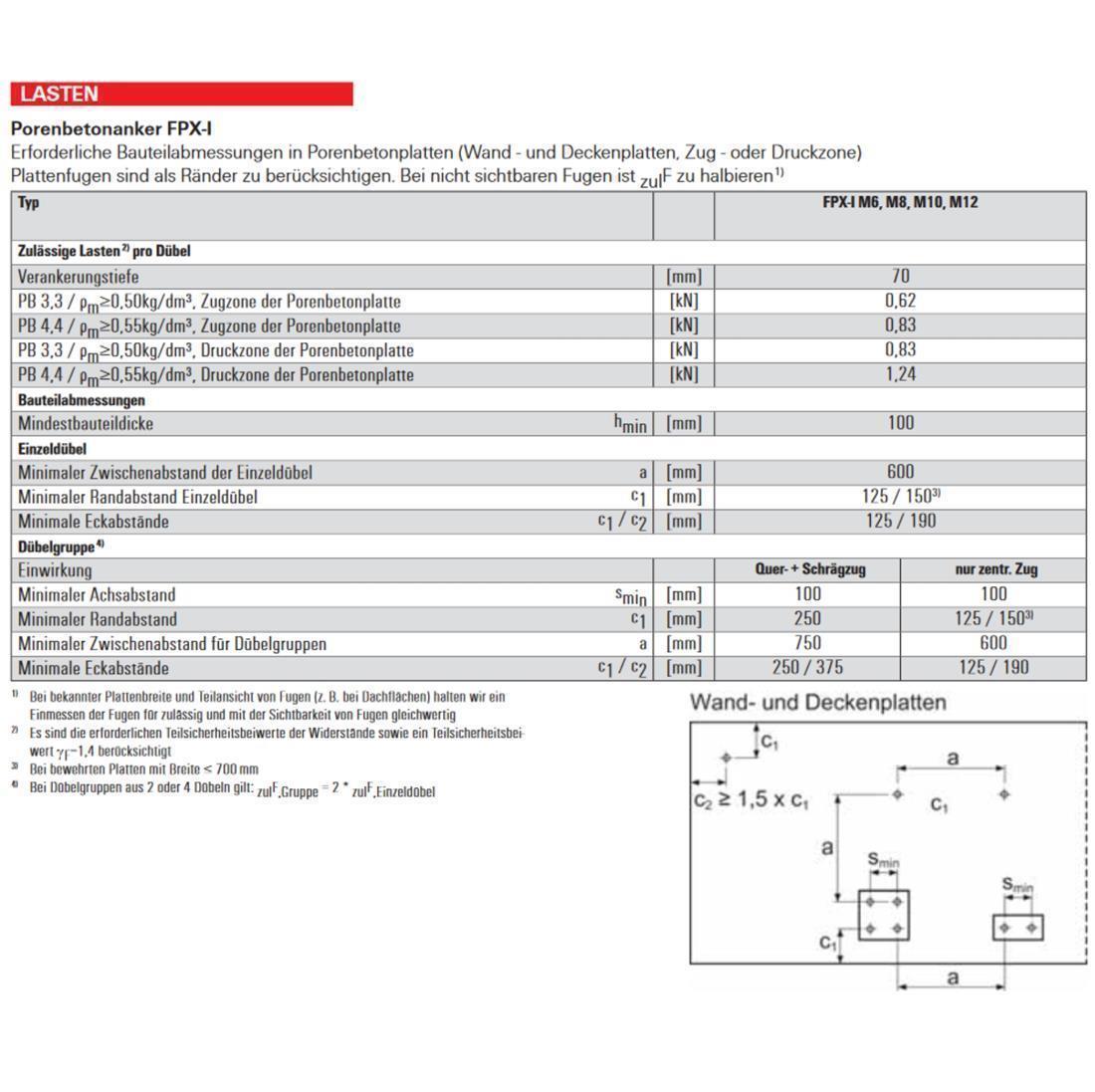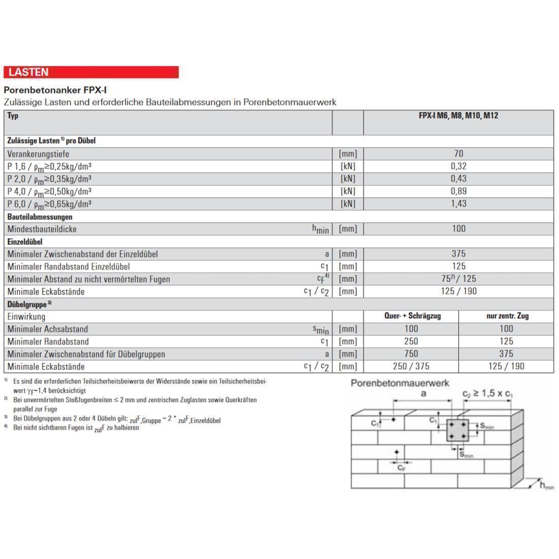 - Durch Vorbohren wird auch im hochfesten Porenbeton ein einfaches Einschlagen ermöglicht. Eine Bohrlochreinigung ist nicht erforderlich.