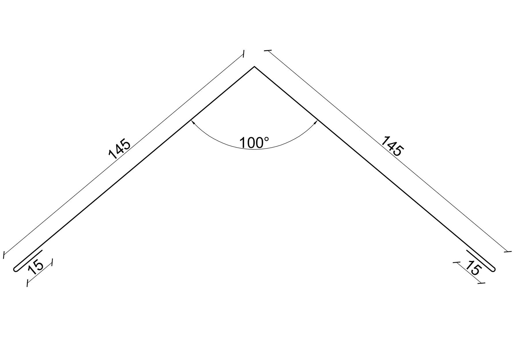 145 mm Schenkellänge mit 100 Grad Winkel.
