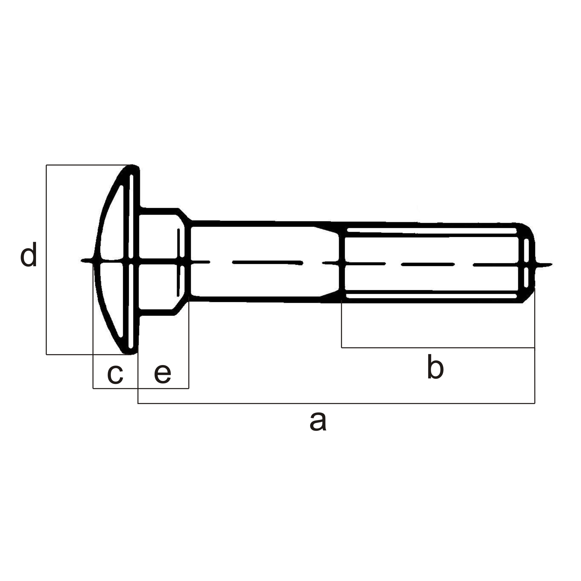 - Kopf: Flachrundkopf mit Vierkantansatz, um ein Verrutschen beim Anziehen zu verhindern