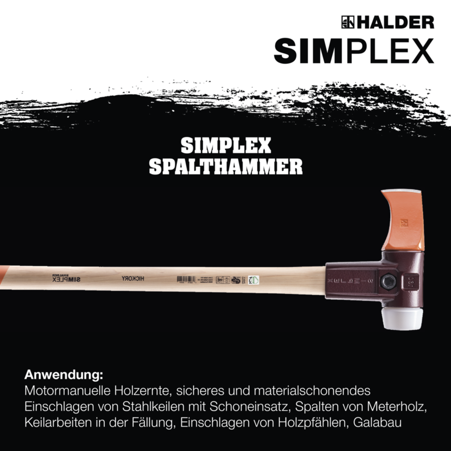 Der SIMPLEX-Spalthammer von Halder vereint zwei Werkzeuge in Einem, einen Spalthammer und einen Schonhammer in absoluter Profiqualität und bietet somit eine erhebliche Kostenersparnis gegenüber dem Einzelkauf. Die hohe Produktqualität ist vom Kuratorium für Waldarbeit und Forsttechnik (KWF) attestiert.