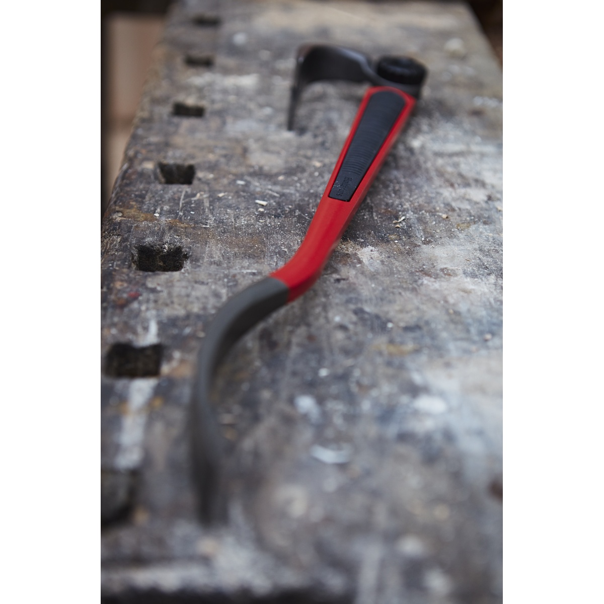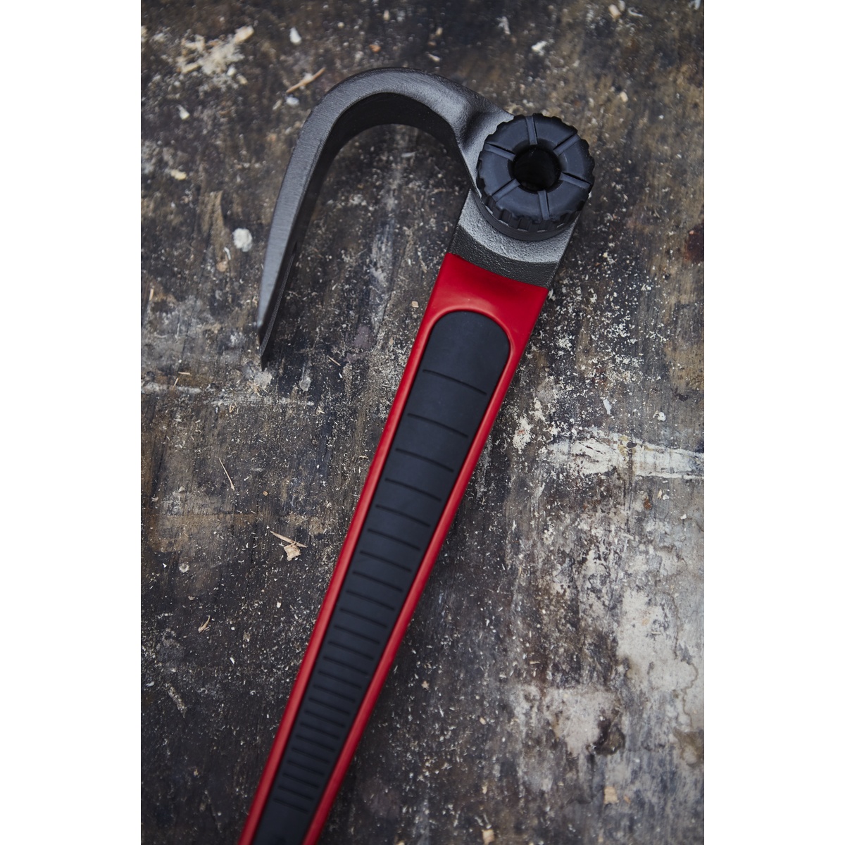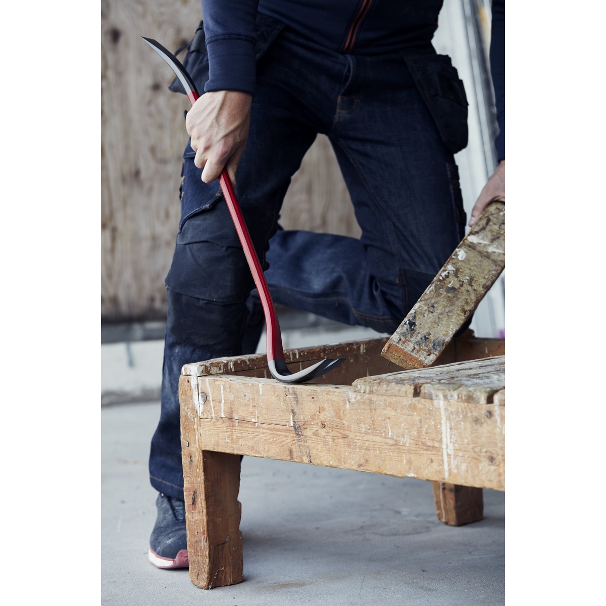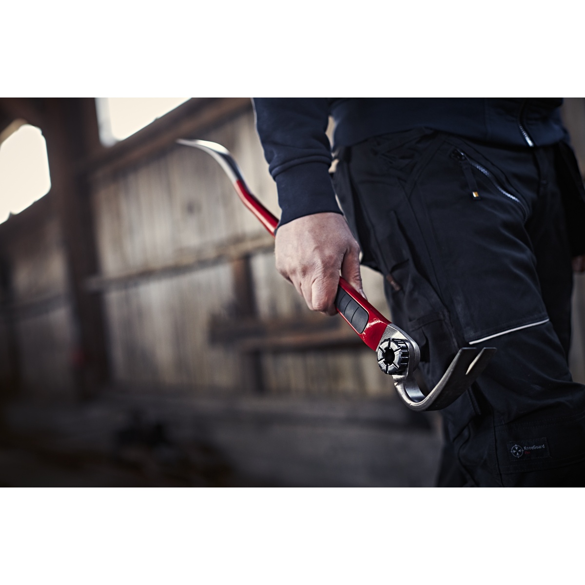 Nageleisen aus hochqualitativem Stahl mit einem ergonomischen, gummiumhüllten Griff. Ausgeprägte Klaue, in neun Positionen verstellbar. Breite Kontaktfläche und dünne Enden machen den Zugang zu kleinen Nischen möglich und minimieren das Risiko, das Werkstück zu beschädigen. Die Klaue wurde zum Herausziehen von Nägeln optimiert. Der gebogene Teil des Stemmeisens bietet großzügigen Platz für die Hand und minimiert das Verletzungsrisiko.