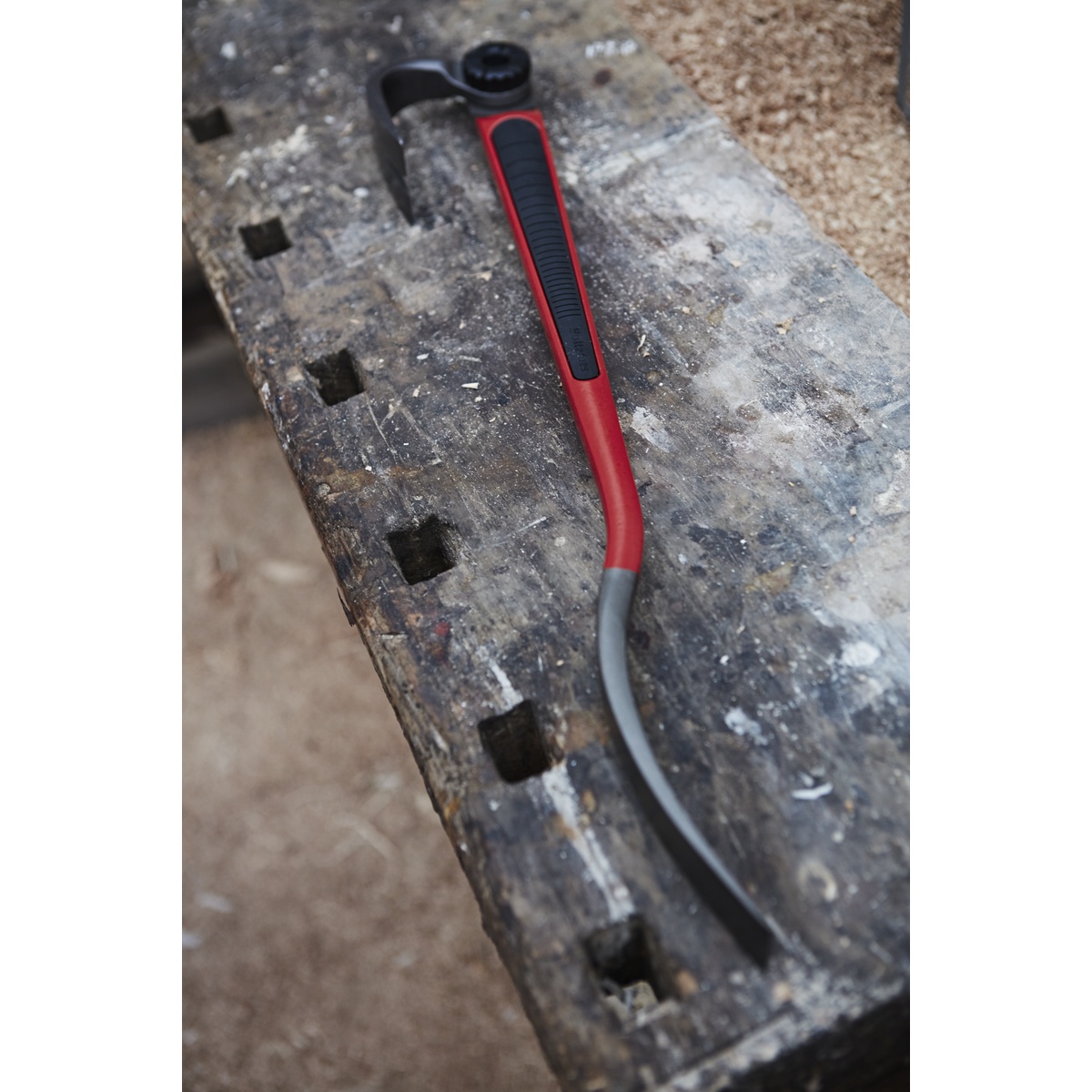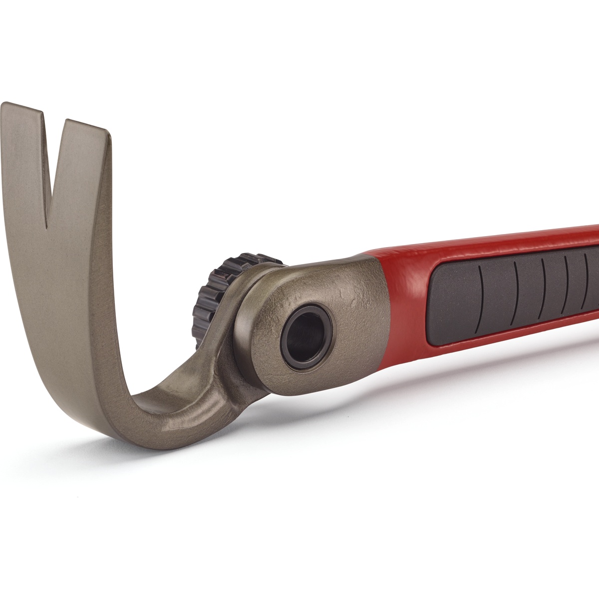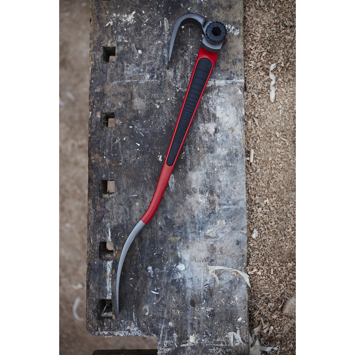 Nageleisen aus hochqualitativem Stahl mit einem ergonomischen, gummiumhüllten Griff. Ausgeprägte Klaue, in neun Positionen verstellbar. Breite Kontaktfläche und dünne Enden machen den Zugang zu kleinen Nischen möglich und minimieren das Risiko, das Werkstück zu beschädigen. Die Klaue wurde zum Herausziehen von Nägeln optimiert. Der gebogene Teil des Stemmeisens bietet großzügigen Platz für die Hand und minimiert das Verletzungsrisiko.