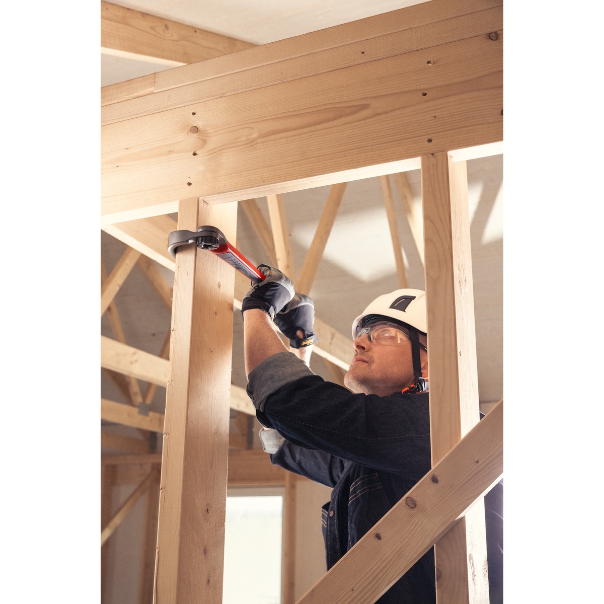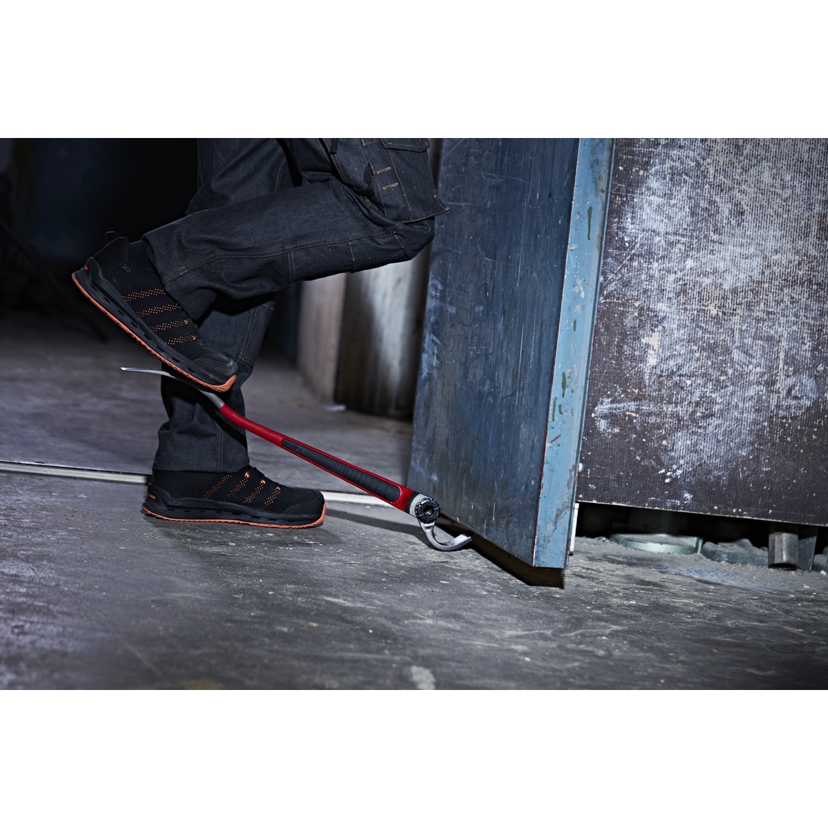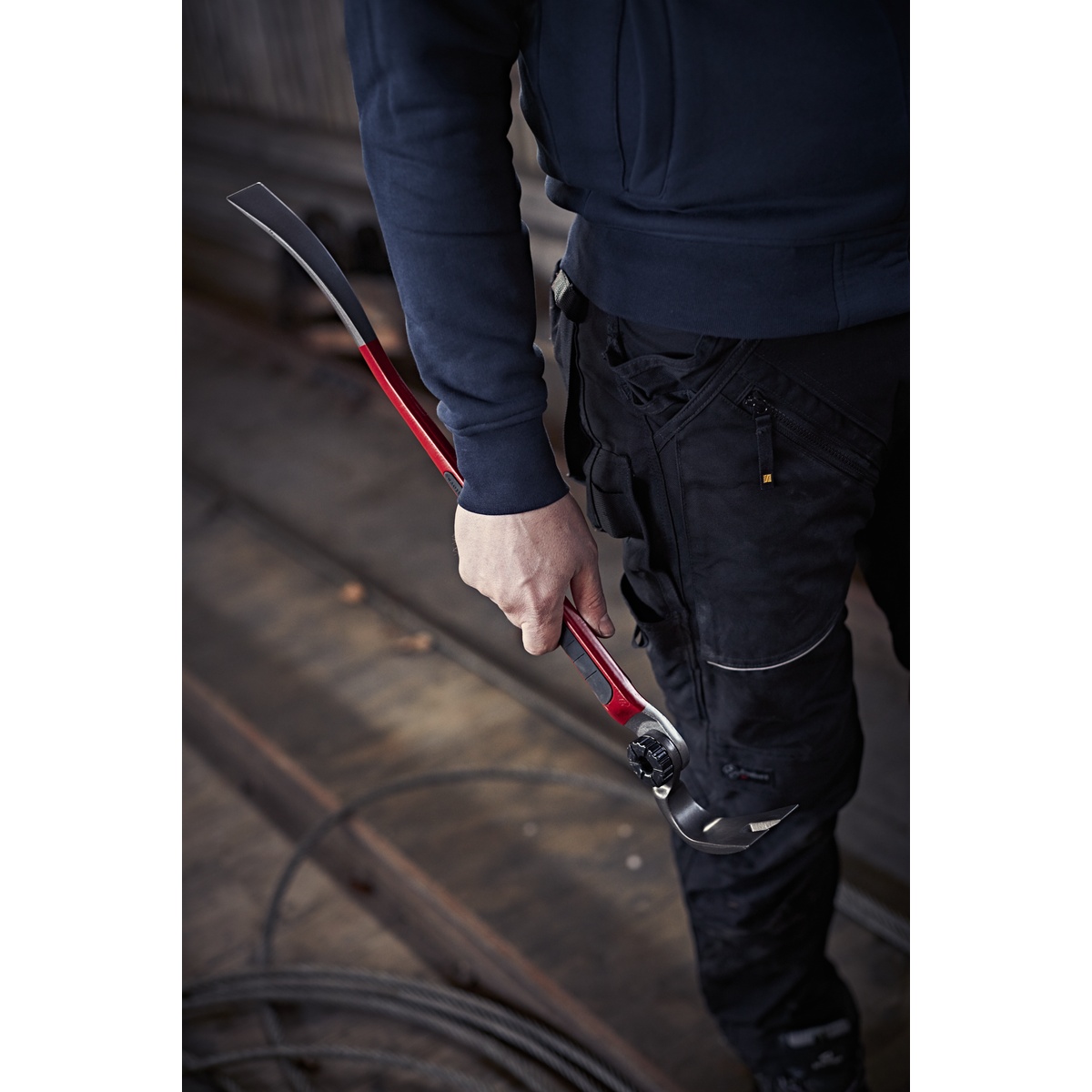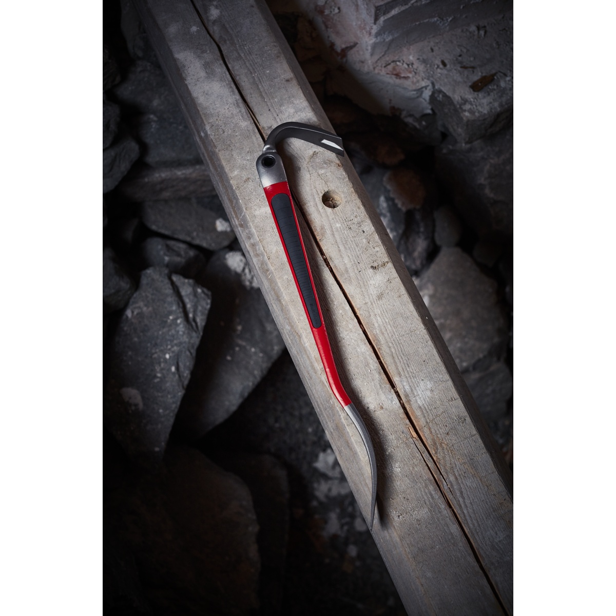 Nageleisen aus hochqualitativem Stahl mit einem ergonomischen, gummiumhüllten Griff. Ausgeprägte Klaue, in neun Positionen verstellbar. Breite Kontaktfläche und dünne Enden machen den Zugang zu kleinen Nischen möglich und minimieren das Risiko, das Werkstück zu beschädigen. Die Klaue wurde zum Herausziehen von Nägeln optimiert. Der gebogene Teil des Stemmeisens bietet großzügigen Platz für die Hand und minimiert das Verletzungsrisiko.