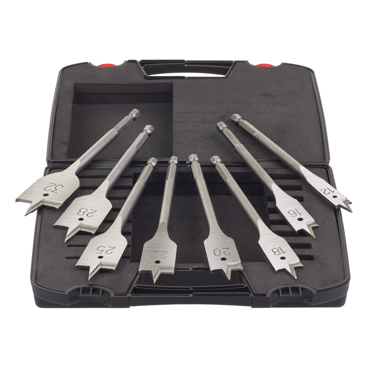 Produktinformationen "Milwaukee Flachholzbohrer Kassette 8-teilig, 12/16/18/20/22/25/28/32 x 152 mm - 1 Stk."