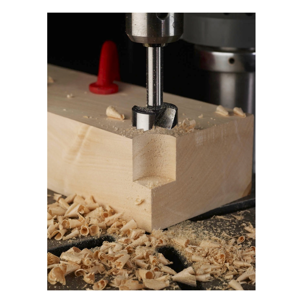 - Zentrierspitze für punktgenaues Anbohren, Nebenschneiden zum Bohren ausrissfreier, maßhaltiger Sacklöcher sowie Rundlaufbohrungen in allen weichen und harten Naturhölzern