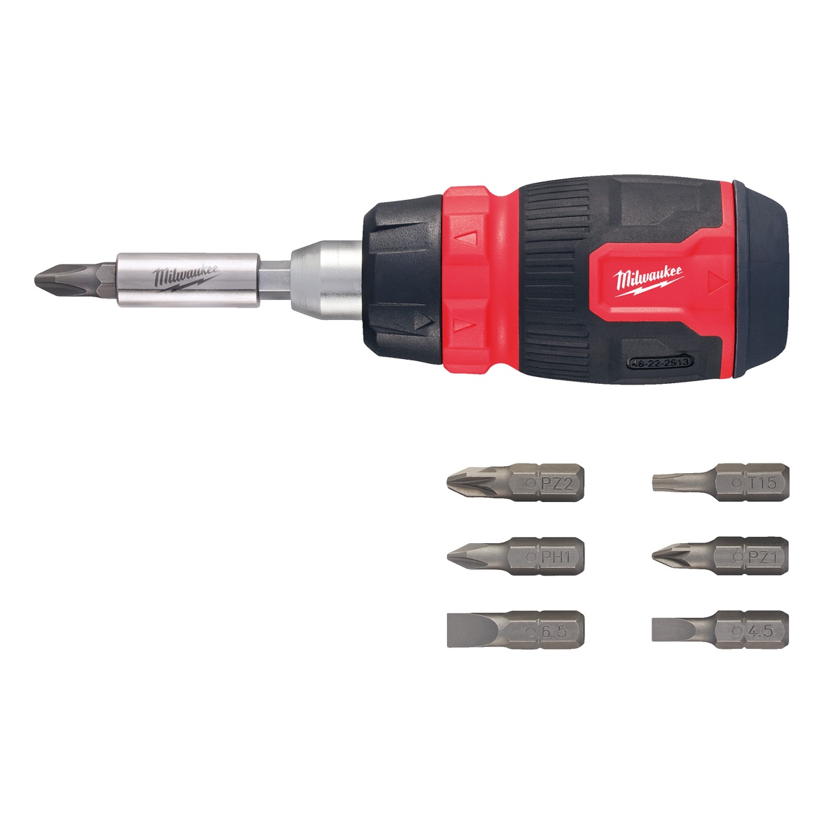Produktinformationen "Milwaukee Multi-Bit Schraubendreher mit Ratschenfunktion Stubby inkl. 7 Bits PH/PZ/TX/SL - 1 Stk."