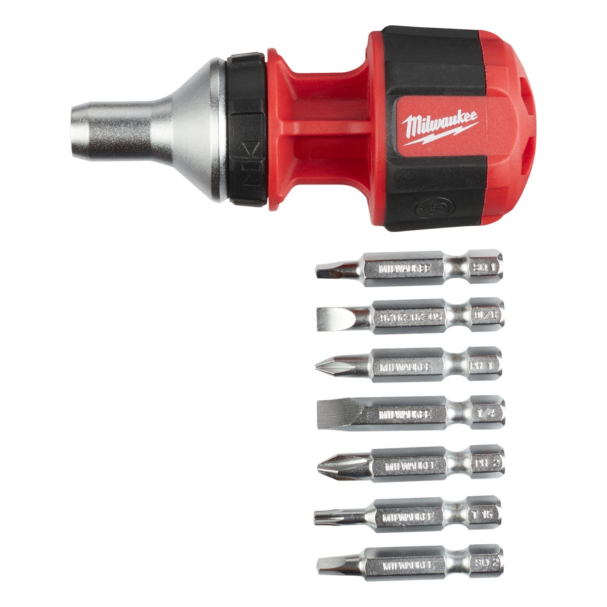 Produktinformationen "Milwaukee Schrauberdreher mit Ratschenfunktion Stubby inkl. 7 Bits PH/PZ/TX/SL - 1 Stk."