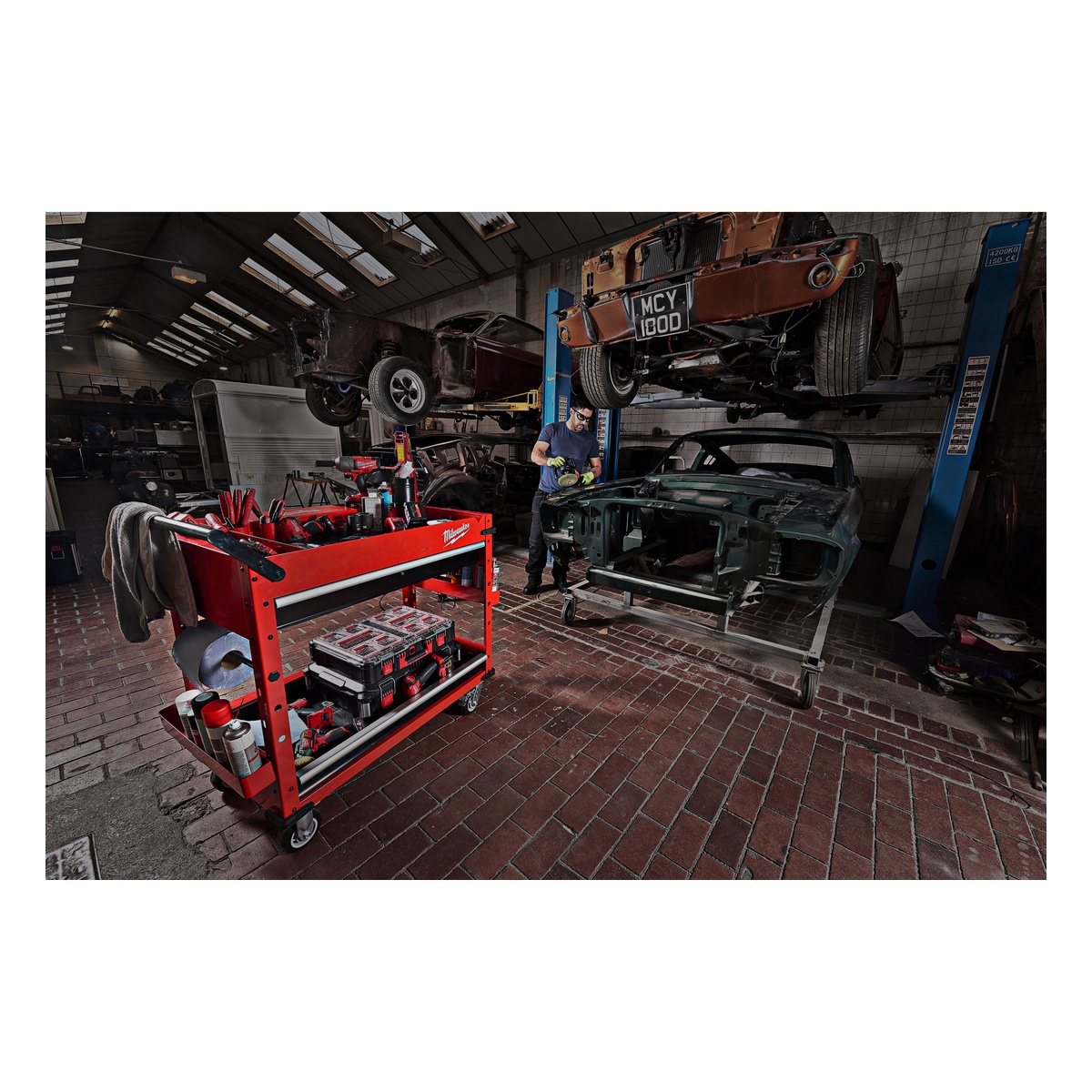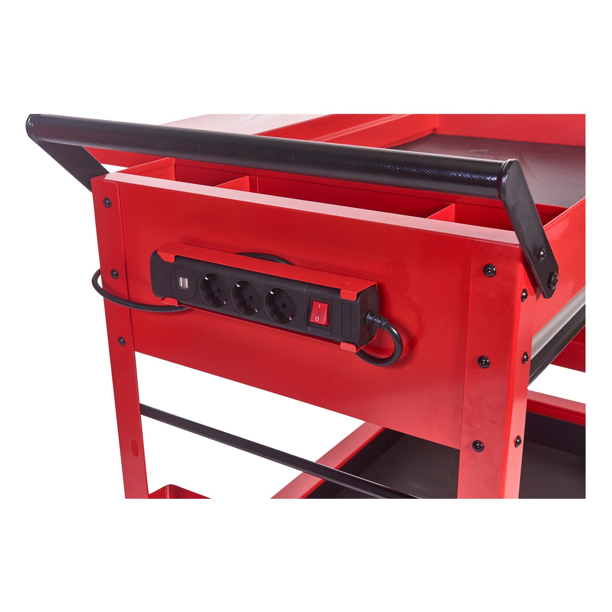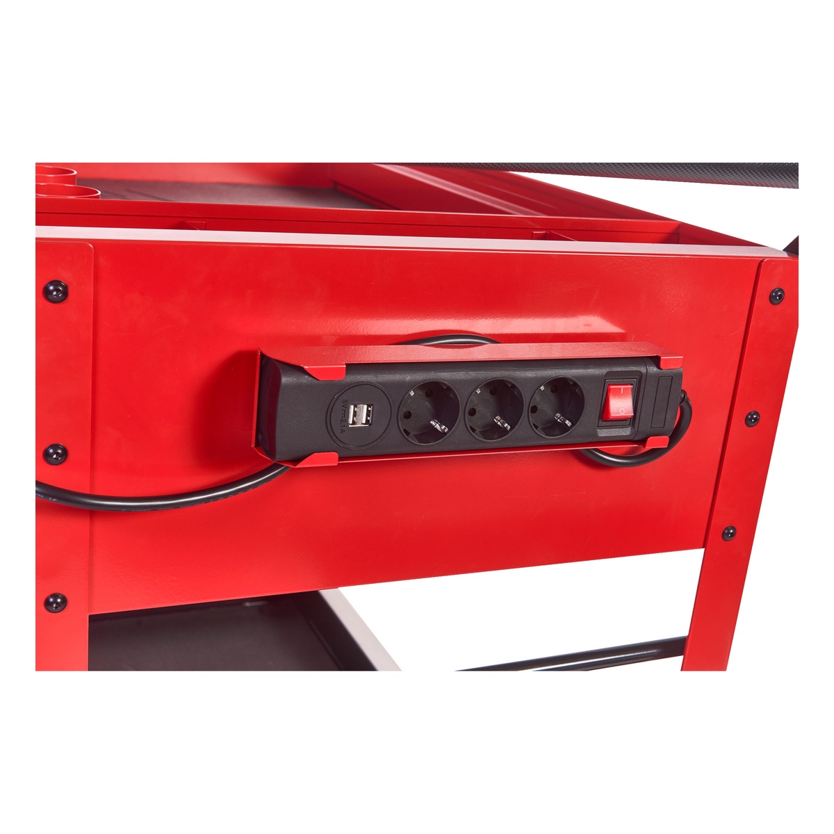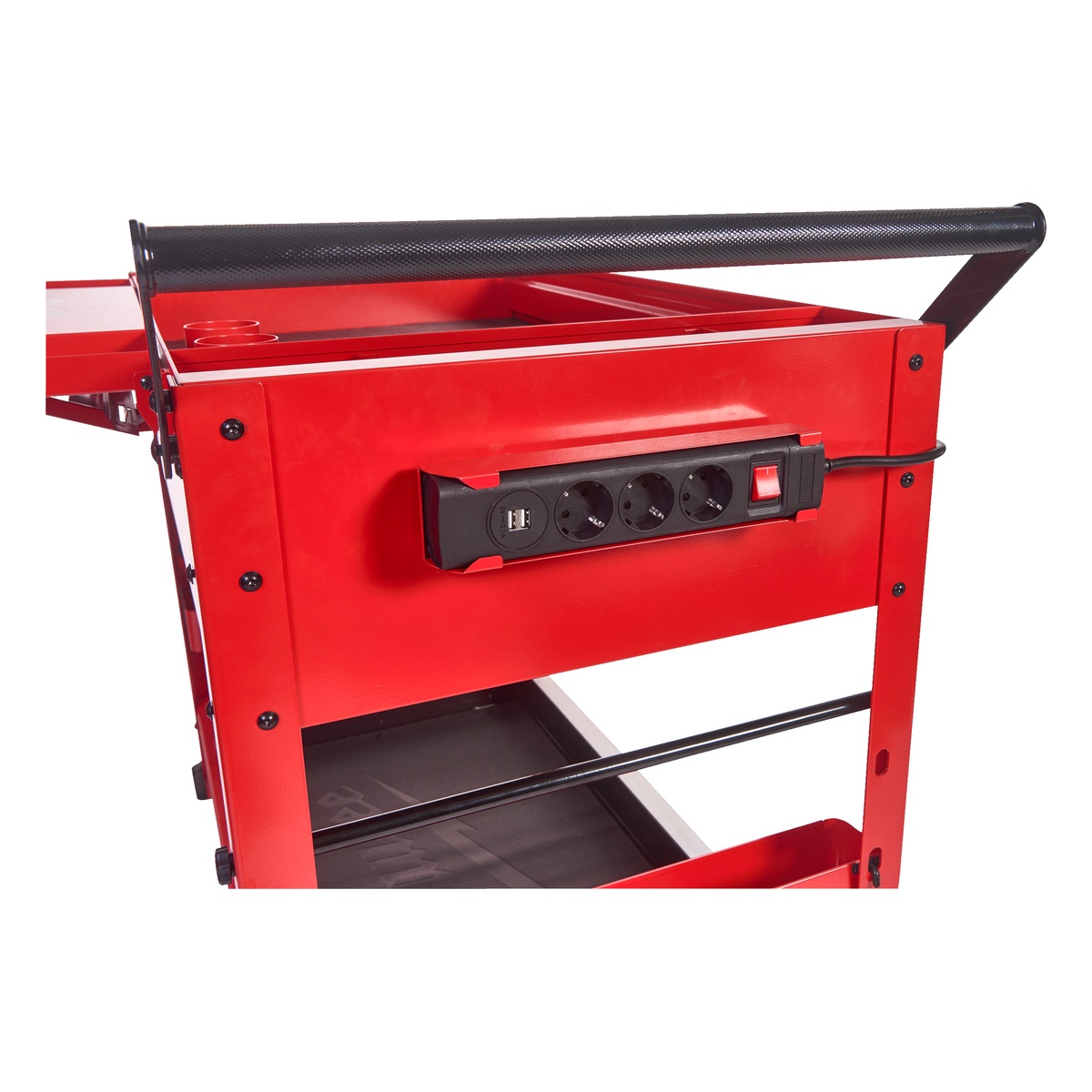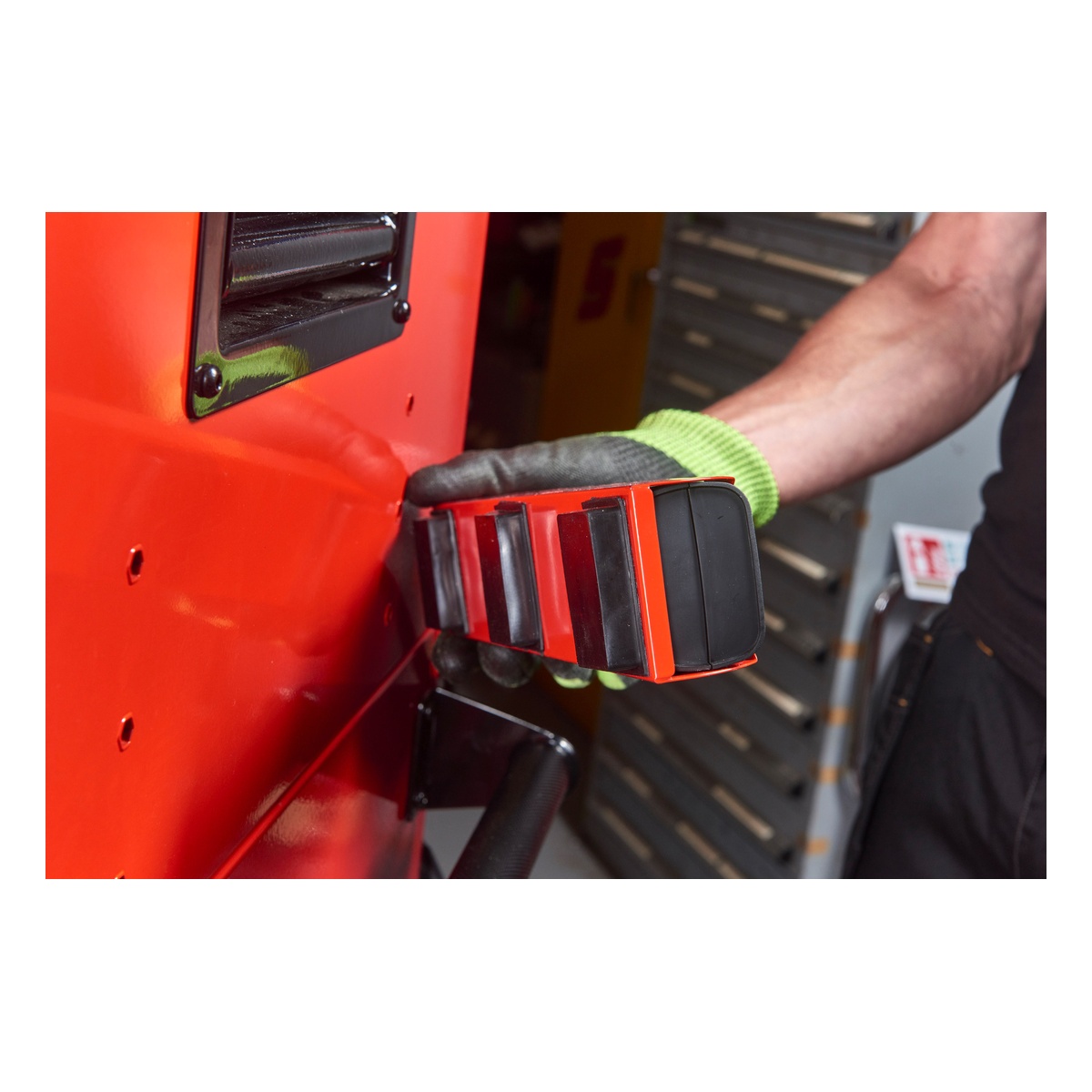 - Magnetischer 240-Volt-Elektroverteiler ermöglicht das Laden von Akkus direkt am Servicewagen
