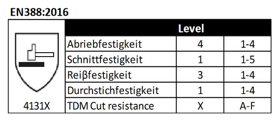 Es handelt sich um einen fingergetauchten Strickhandschuh, der ein hohes Tastgefühl sowieso einen präzisen und sicheren Griff bietet.