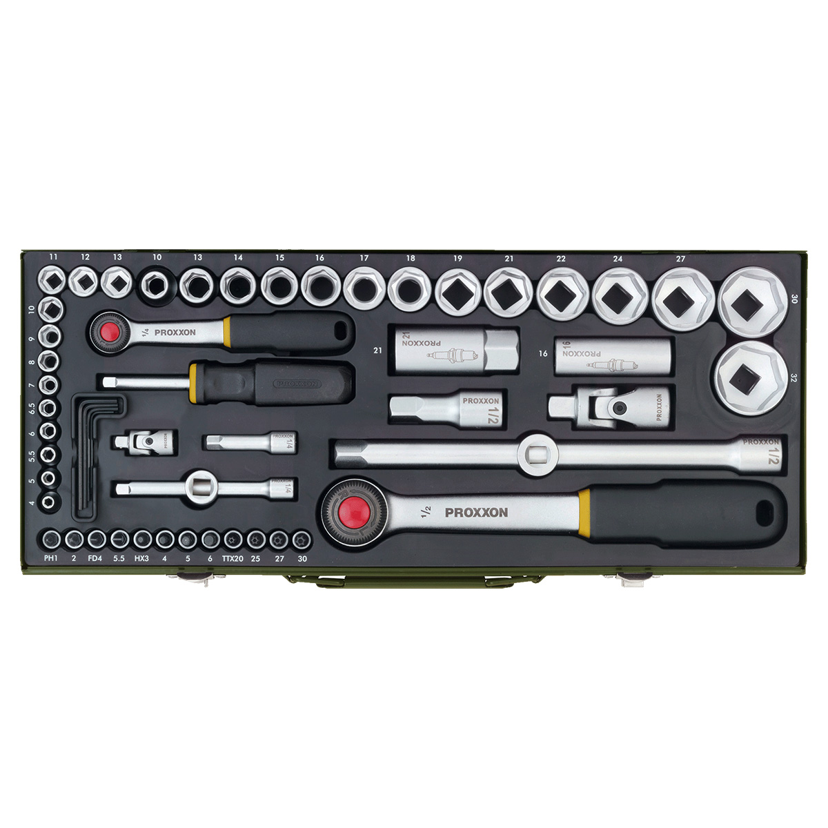 Produktinformationen "PROXXON Komplett-Steckschlüsselsatz 1/4" + 1/2" (56-teilig)"