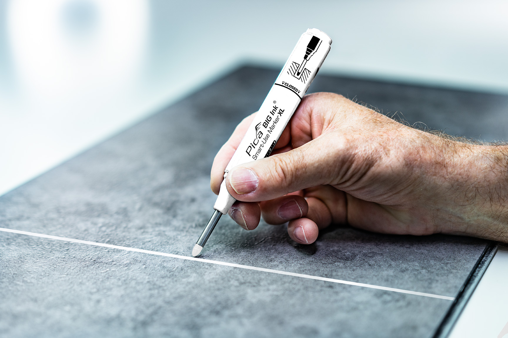 Derneue Pica BIG Ink ist sowohl Permanent- als auch Tiefloch-Marker in Einem. Mit dem Edelstahlrohr gelingen Punktgenaue Markierungen durh Bohrlöcher ab 5mm Durchmesser. Die weiche und formstabile Spezialspitze sorgt für ein einzigartiges Schreibgefühl auf allen glatten und trockenen Oberflächen wie z.B. Glas, Metall, Kunststoff, Folie oder Kartonage. Der XL-Tintenvorrat sorgt für lange Markierleistung.