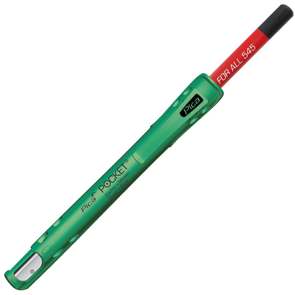 -Seine geniale Klemmfunktion fixiert den Holzstift stets griffbereit. Man konzentriert sich auf seine Arbeit und findet den Stift blind