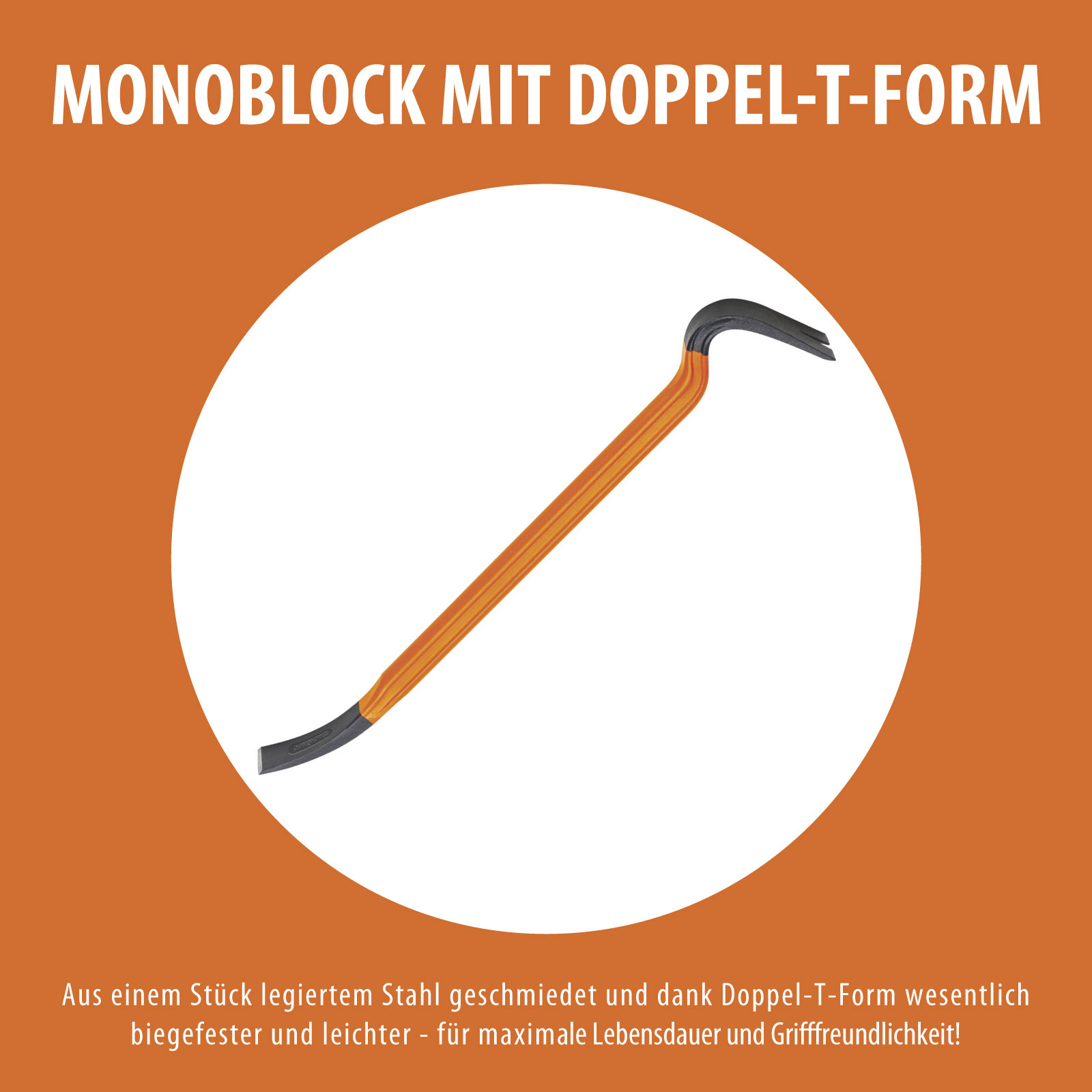 Die präzise geschliffene Klingen erleichtern das Eindringen in schmale Spalten und durch das Doppel-T-Profil ist es gewichtsoptimiert, extrem biegefest und robust.