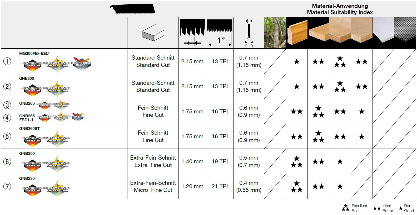 Passende Sägeblätter: GNB230 / GNB250 / GNB265ST / GNB265FBD-1 / GNB265 / GNB300