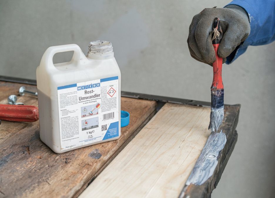 WEICON Rostumwandler dient zur Neutralisierung von Rost auf angerosteten Eisen- und Stahluntergründen. Rostumwandler stoppt den Korrosionsprozess zuverlässig und bietet somit einen tragfähigen Untergrund für weitere Oberflächenbeschichtungen.