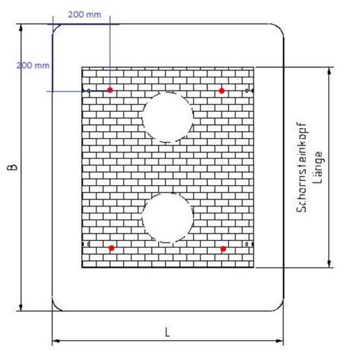 - bis einschließlich 950mm Schornsteinkopflänge sind zwei Stützenpaare, ab 960mm drei Stützenpaare erforderlich