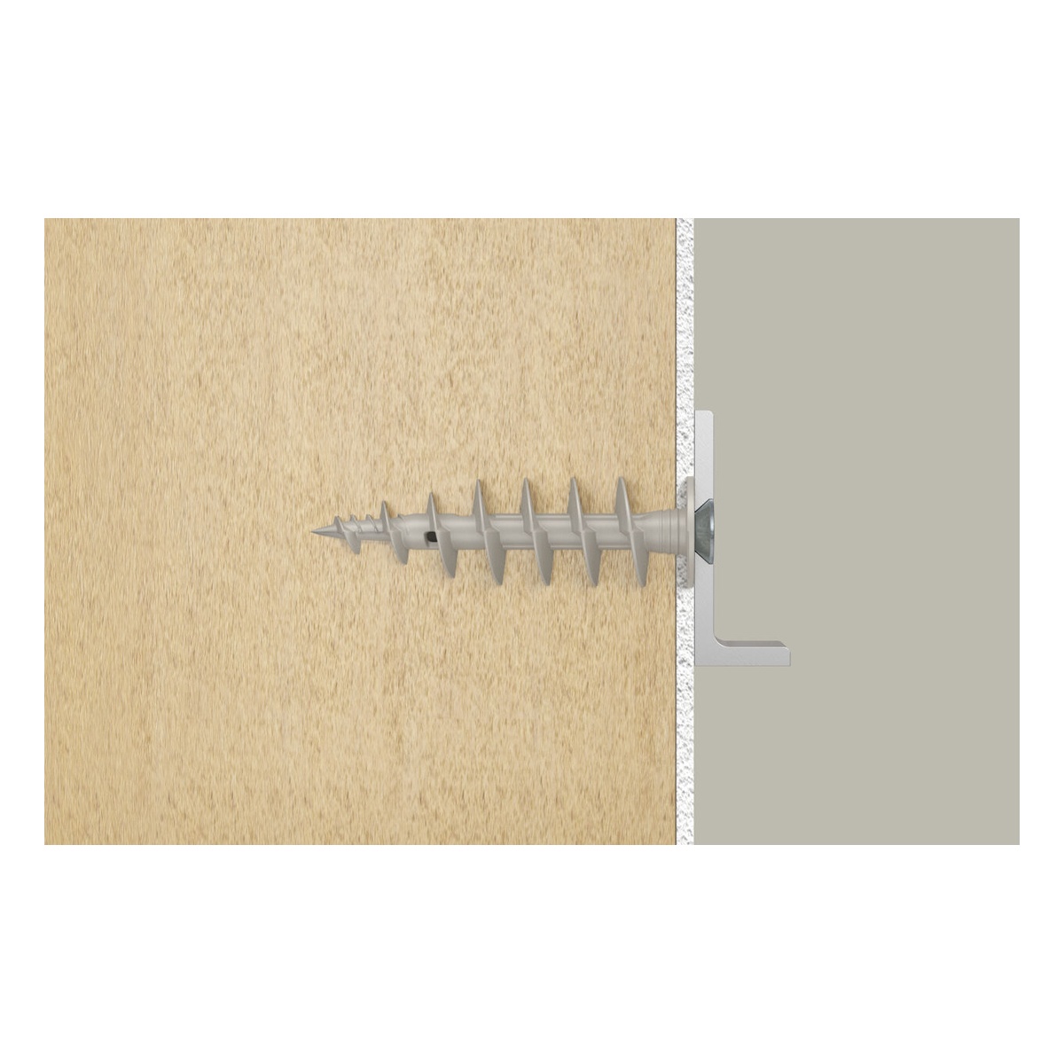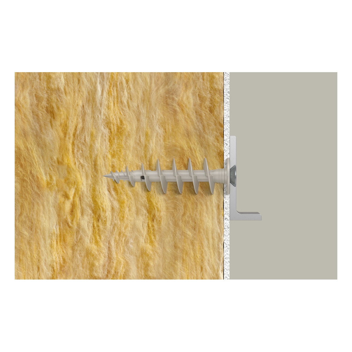- Durch die spezielle Spitzengeometrie schraubt sich der Dübel ohne Vorbohren durch Putzstärken bis zu 10 mm, was eine schnelle Verarbeitung ermöglicht.