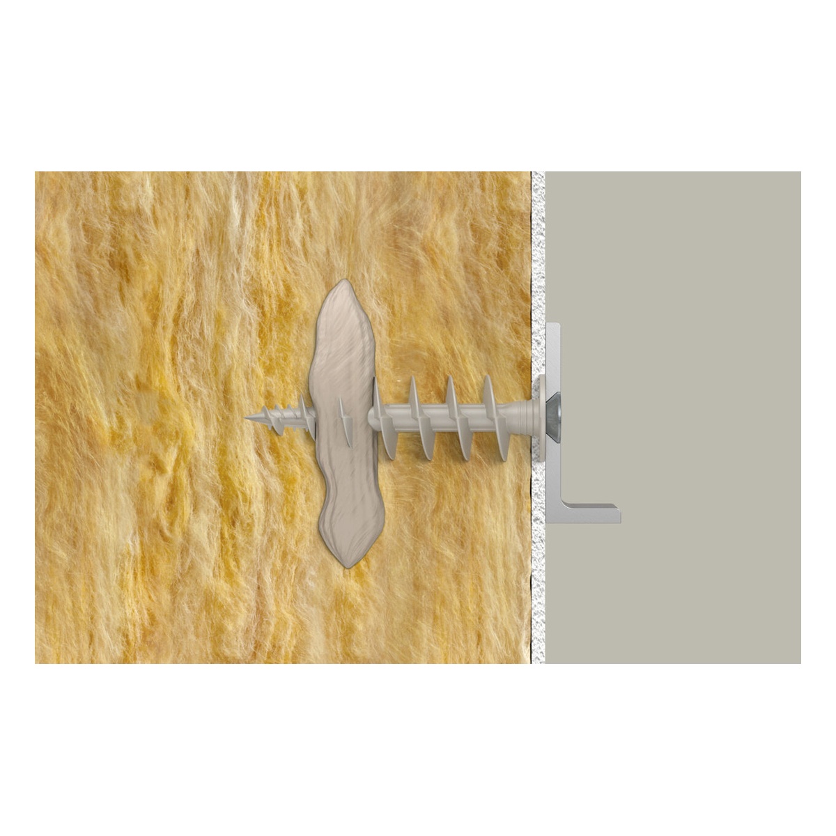 - Der Dämmstoffdübel verankert sich formschlüssig im Dämmstoff ohne den Putz zu zerstören.