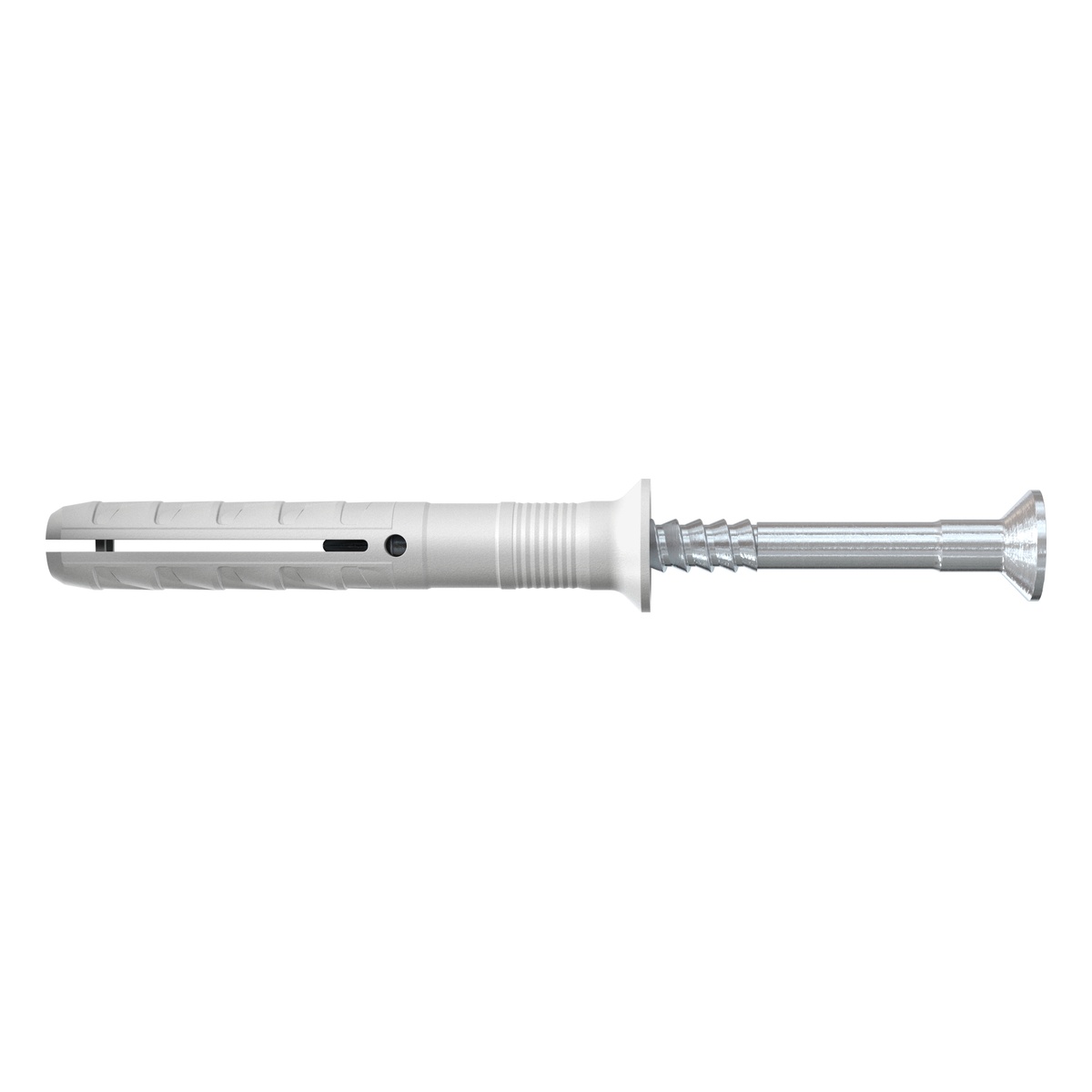 - Einfache und sichere Montage: Integrierte Einschlagsperre verhindert ein vorzeitiges Aufspreizen des Dübels.